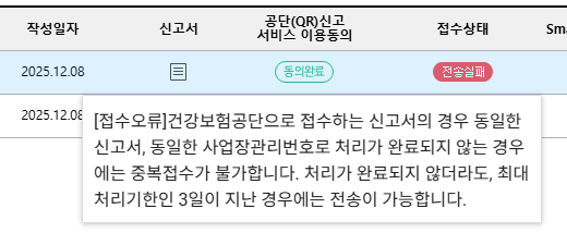 현재 제가 위하고에서 공단마감_신고를 두번해놔서.. 전송실패가 뜨고