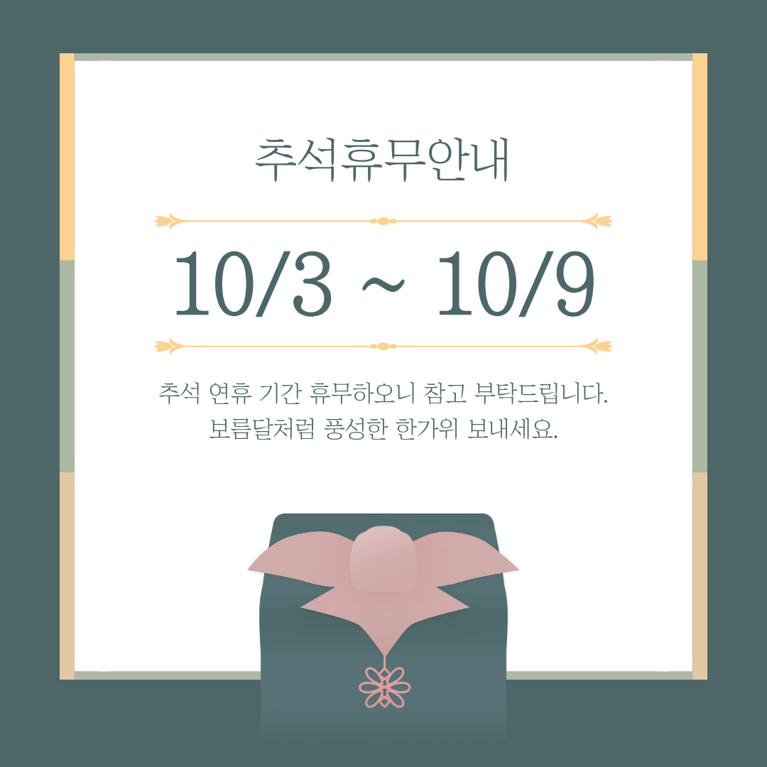 1:1๋ฌธ์ ๋ฐ ์๋ด ํด๋ฌด ๊ธฐ๊ฐ: 10์ 3์ผ(๊ธ) ~ 10์ 9์ผ(๋ชฉ)